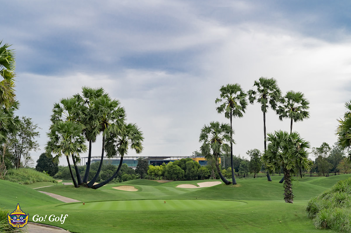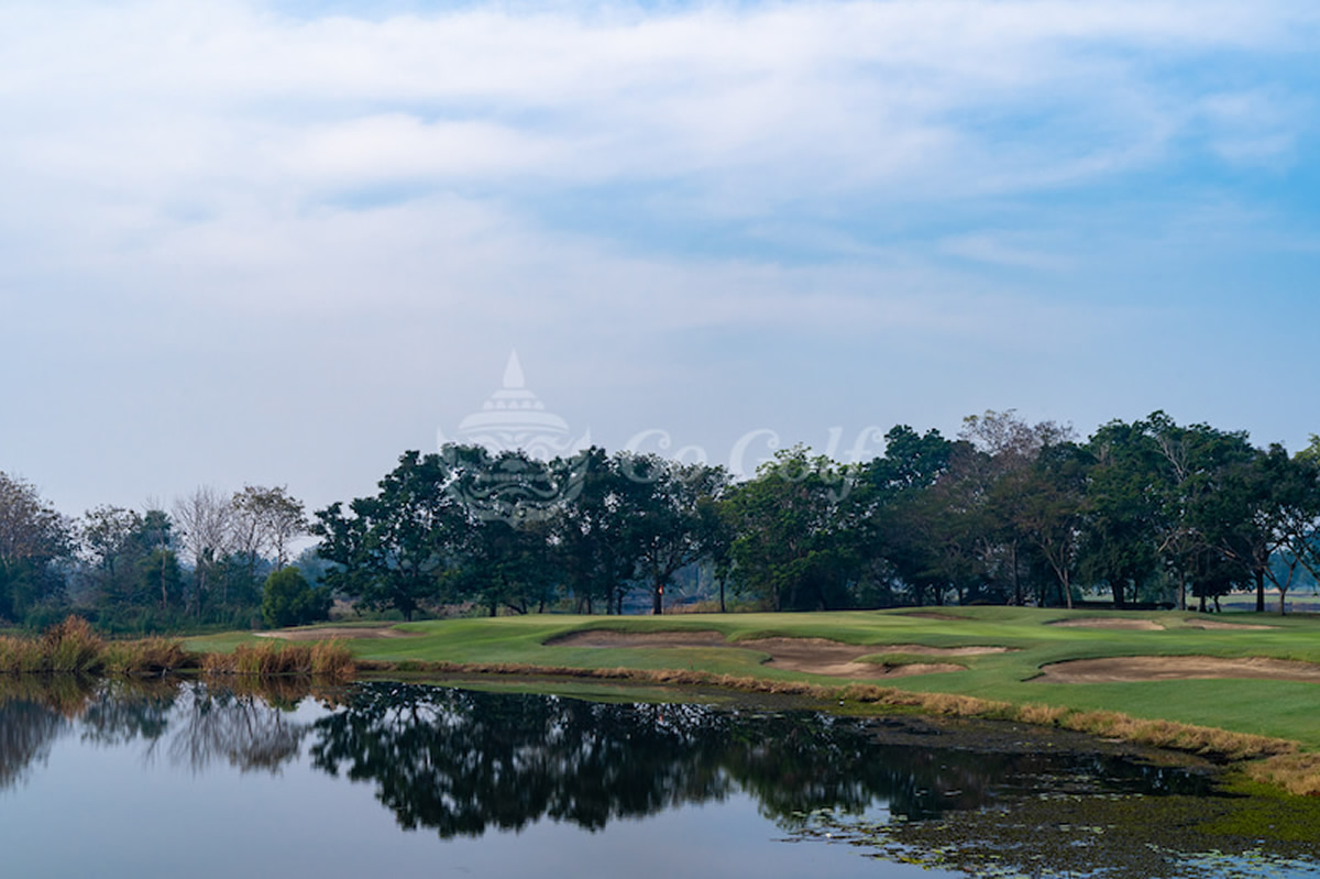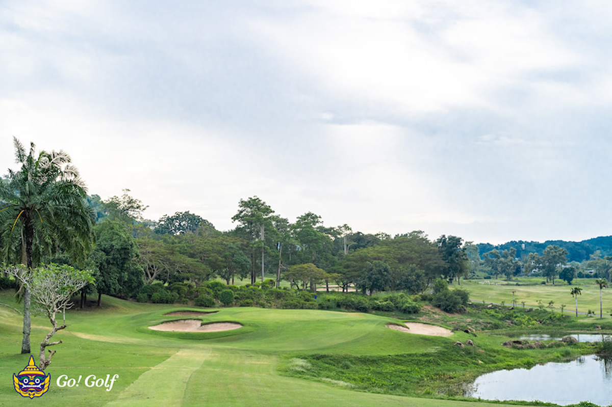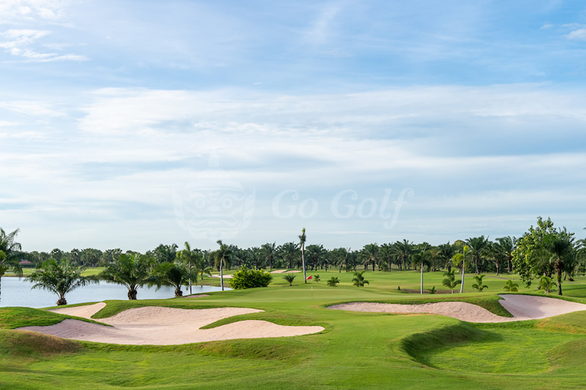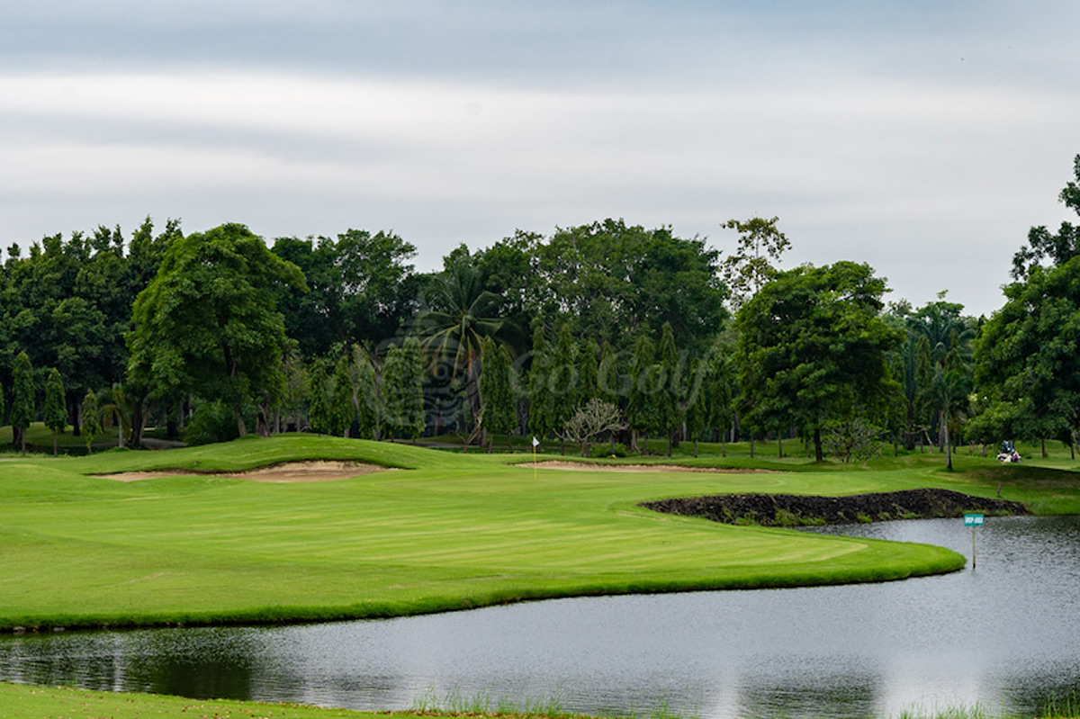 非常に綺麗なクラブハウスがあり、コースはメンテ良好、フラットでアウトは左、インは右がずっと池という特徴を持つ。写真の11番アイランドグリーンは必見。平日コミコミ1,350B、土日コミコミ1,650B〜。