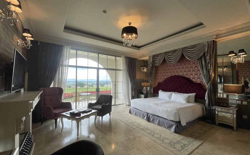 そしてホテルのお部屋もヨーロピアンスタイルでゴー、ジャス!&テラスからのゴルフ場の眺めは絶景。ここで高原の風を感じながら朝のコーヒーは癒されますラブラブWiFiもしっかりスピード出ており仕事も捗りました。ぱっと見高そうですが、1泊1部屋5,000B程度ですまじかるクラウンその価値は十分あると思いました。