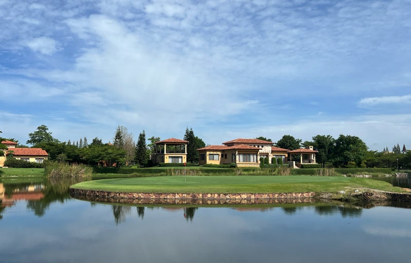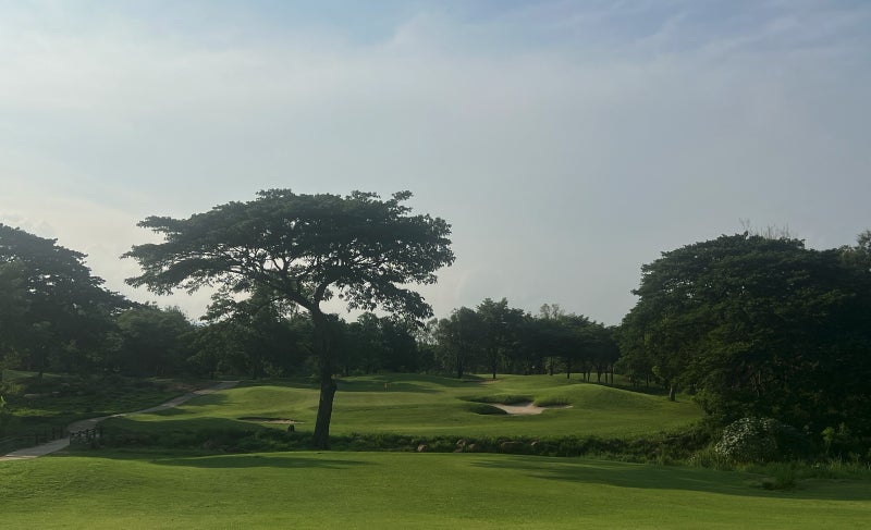 いやー、いいですよね、個人的には大好きなジャック設計の見事なコースです。こちらはかなり近い山々に囲まれて素晴らしい景観を楽しめるコース!!ぱっと見のコースの美しさはやはりジャックですよね。カオヤイに来たらプレーしてほしいコースです。