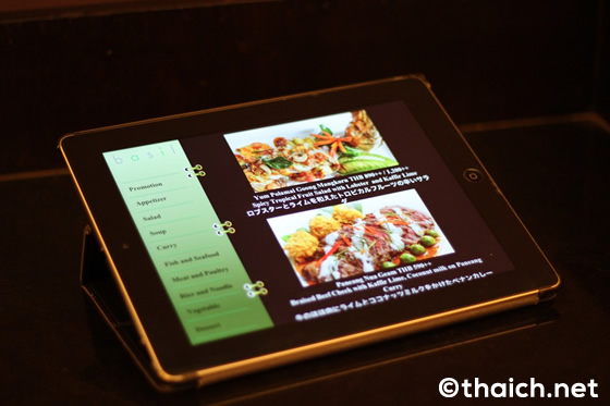 通常のメニューはタイ語・英語表記ですが、ipad版には日本語メニューも用意してあるので、こちらの方が料理を選ぶ時に便利かもしれません。
