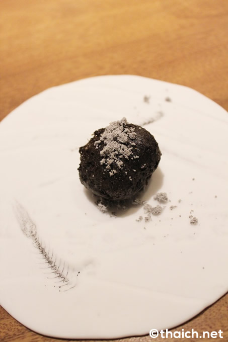 前菜を終え、次はCharcoal。スズキの身を炭で包み焼いたもの。