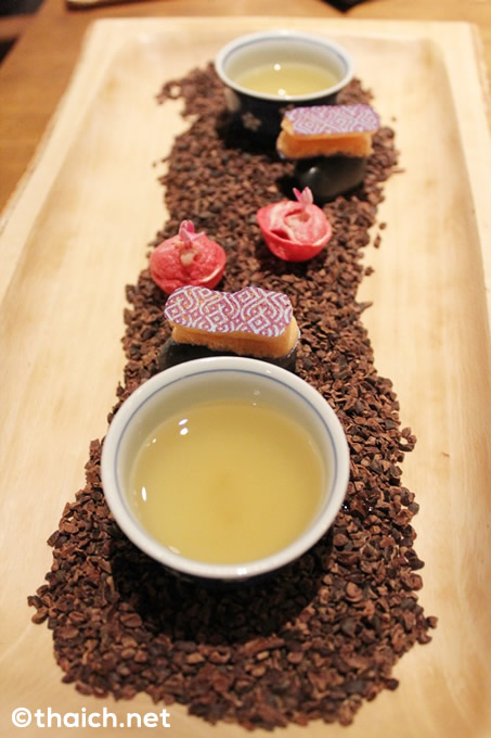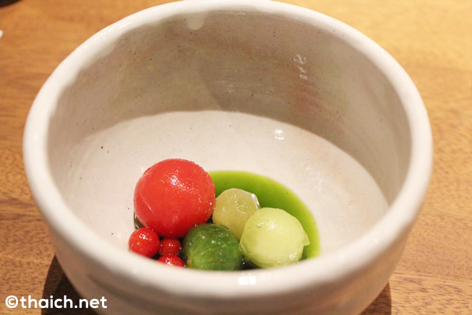 Red Matchaはトマトやフルーツを入れた茶の席風の器が出され、それを食べ終わると、トマトの抹茶を点てて入れてくれます。本当にガガン氏、“和”が好きなんですね~。