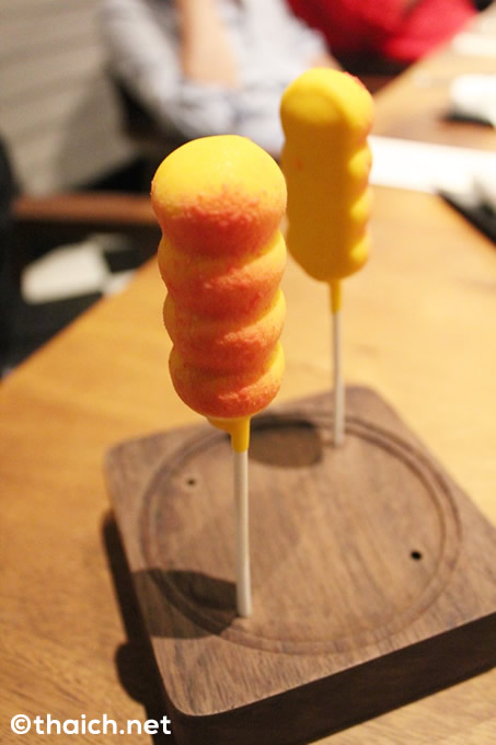 ガガン氏が子供の頃に大好きだったというマンゴーアイスをお洒落にしたMango Duet Lollipop。