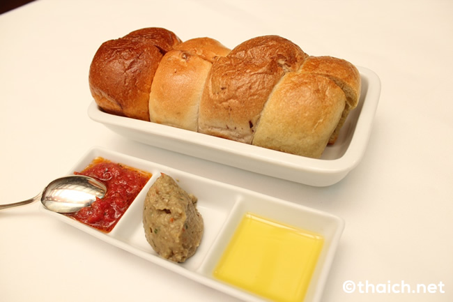 まずは無料サービスのパン。トマト・バジル・ブラックペッパーなどで味付けされていて美味しい~。