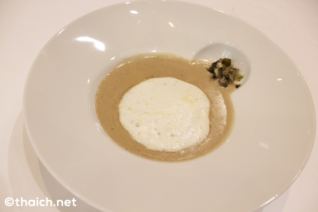 次はアーティチョークのスープ(creamed violet artichoke soup, pecorino B380)。アーティチョーク(朝鮮アザミ)って初めて食べました。濃厚で美味しかったです。
