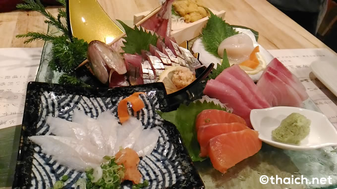 次にお刺身の盛り合わせ。写真左下が「黄金あなご 薄造り」。あなごの刺し身なんてものがあるんですね!生まれてはじめていただきました。しかもバンコクで!