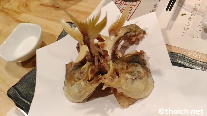 お刺身の盛り合わせにあった鯵の骨は、唐揚げにしていただきました。