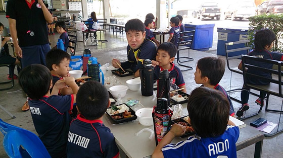 Creer fcの他とは違う取組みは昼休みかな。コーチ陣も混ざってお昼を食べた後、宿題タイムというものを設けている。中学生が幼稚園の平仮名の勉強を手伝ってあげたり…。