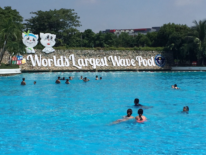 曇っていた空もお昼過ぎには晴れて来た。ここにはギネス認定の世界一広い波のプールがあるという。それがこちら、確かに広い…けど終始穏やかな波が押し寄せているだけでした(文句ではないですよ)。ちなみに波のプールも穏やかな流れ、正直流れているのかどうかというレベル(文句では…)。