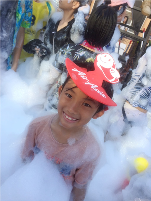 3つのエリアに分けられていて、ライブエリア・スプラッシュエリア…そして最も盛り上がっていたのがバブルエリア(残念ながらアルコール類は持ち込み禁止)。DJのアゲアゲミュージックに合わせ、泡が放出されてくる。ここのエリアにたどり着くまでに1時間かかったかな。列に並んでいる時に息子が「子供はダメだよ」とイベントスタッフに言われる度に、「130㎝あるし」と突っぱねて入場した(本人曰く128㎝)。