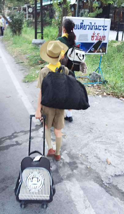 娘息子がスカウトキャンプという学校行事に出掛けて行きました。毎年内容や行先が変わる様で、今年は初日にフィールドアスレチック、2日目はワニや象のショー見学。タイの文化に触れ楽しんで帰って来た様子。