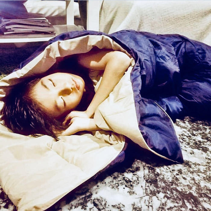 写真は前日に寝袋で寝る練習をしていて本当に寝ちゃった息子ちゃんです。