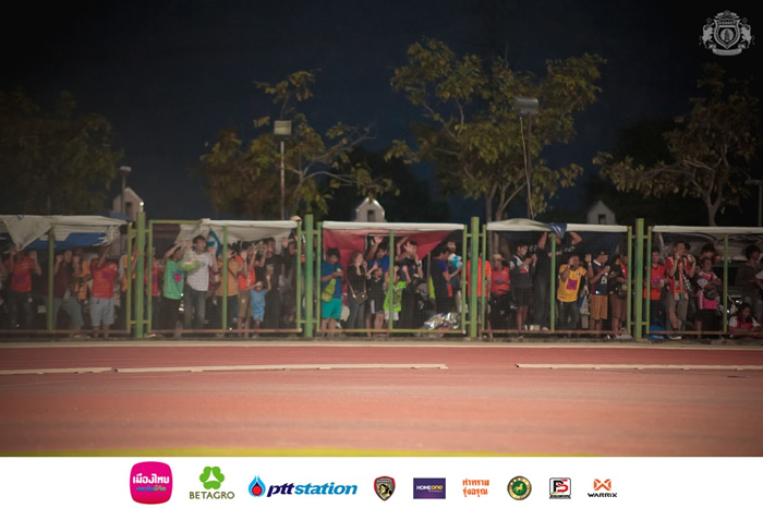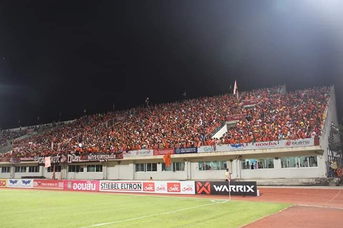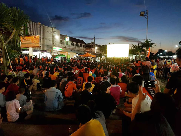更に会場へ足を運べなかった地元のシーサケットFCサポーターは、巨大仮説スクリーンによるパブリックビューイングを敢行。地元から遠く離れた決戦の地へ沢山のエールを送り続けた。