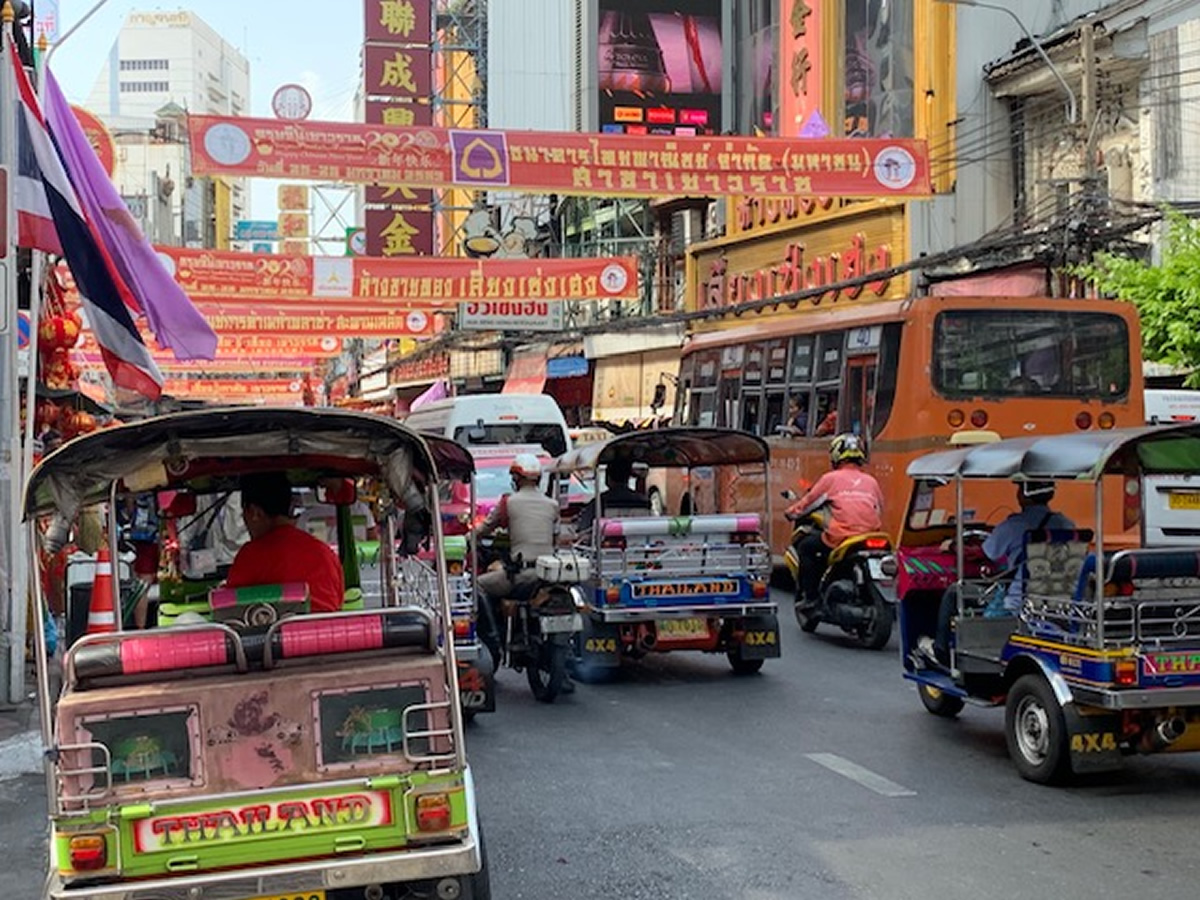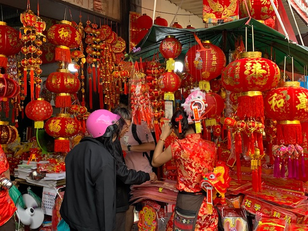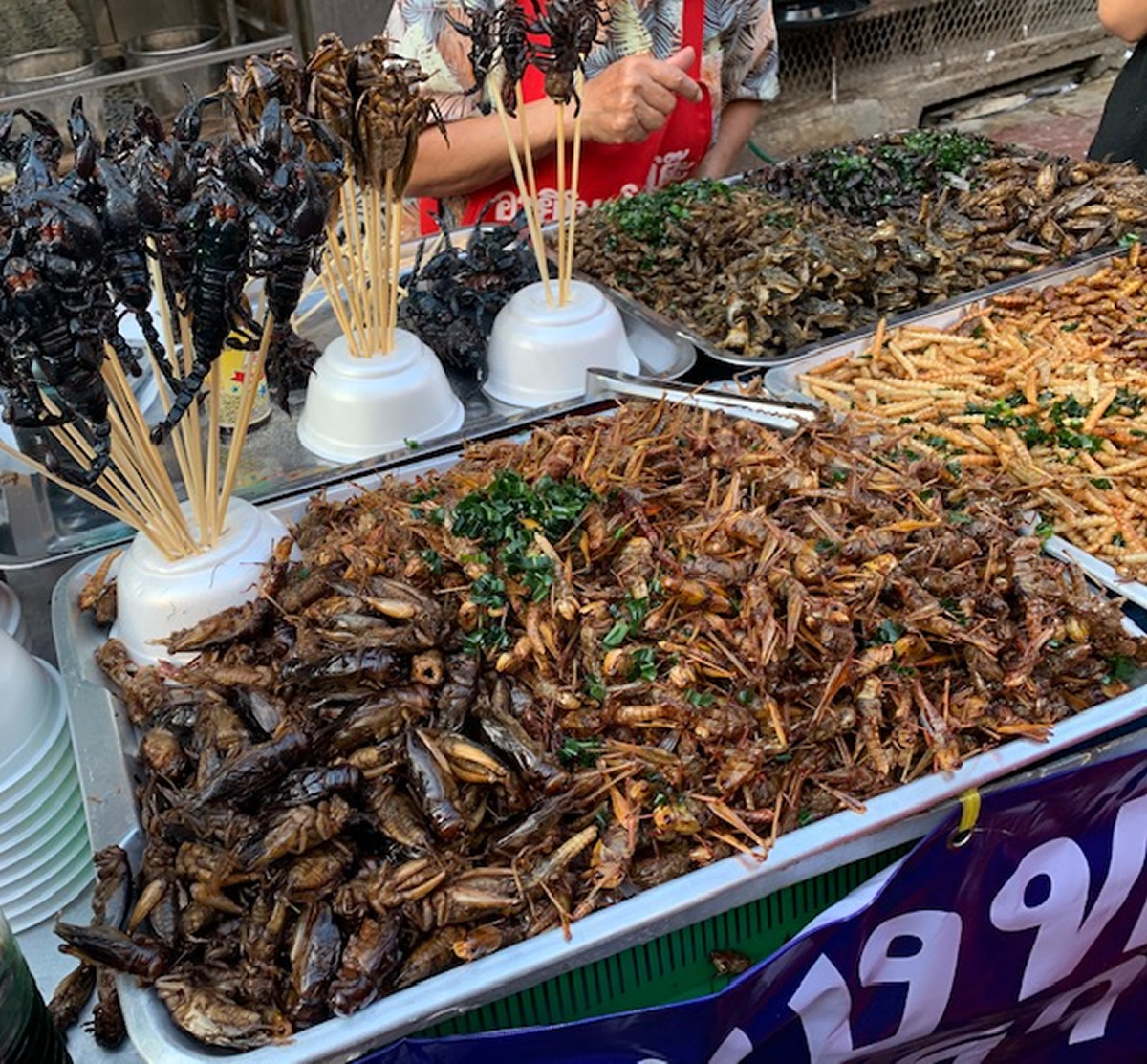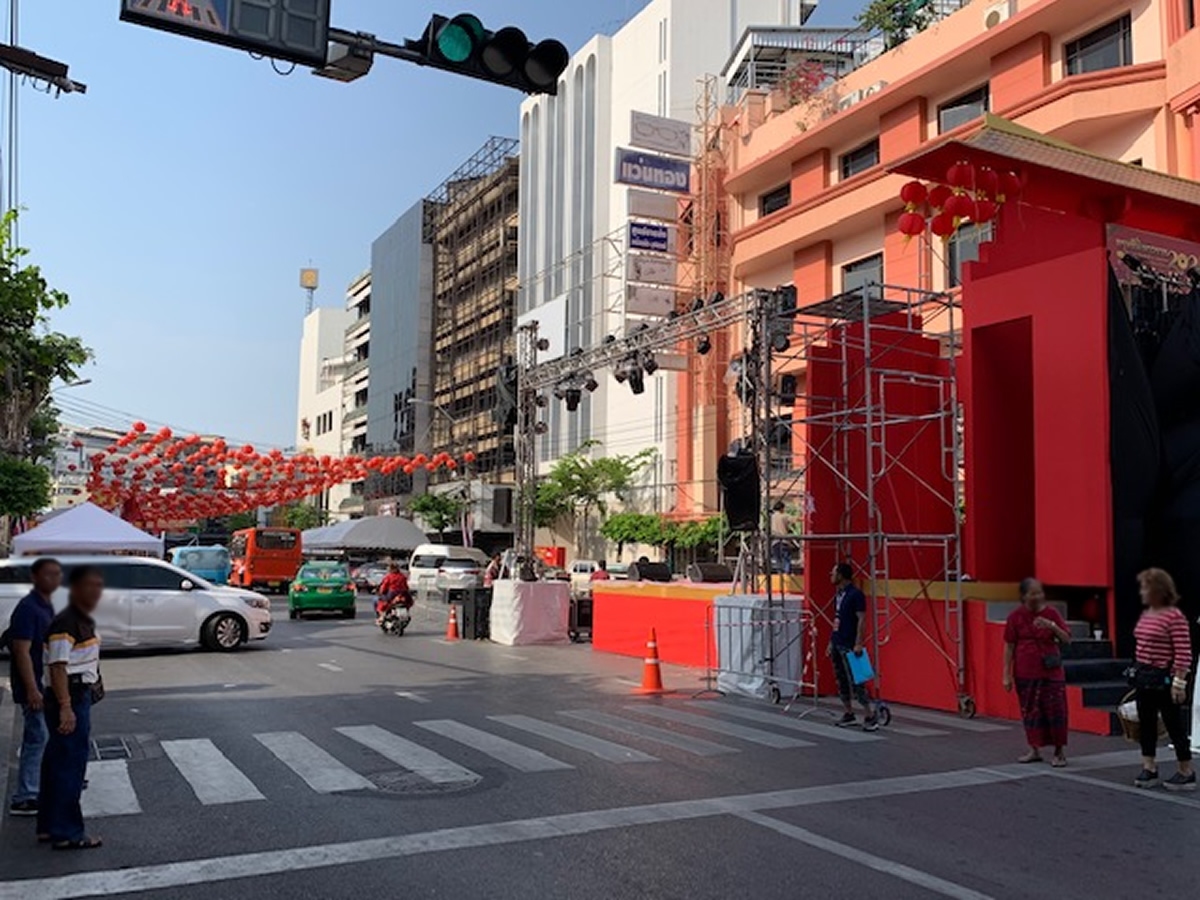 25日はBangkok Chinese New Year Parade会場となる様で、通りではテントの準備などに追われておりました。この日はチャイナ服や赤提灯を売る屋台に交じって“虫”なんかを売る屋台も…。