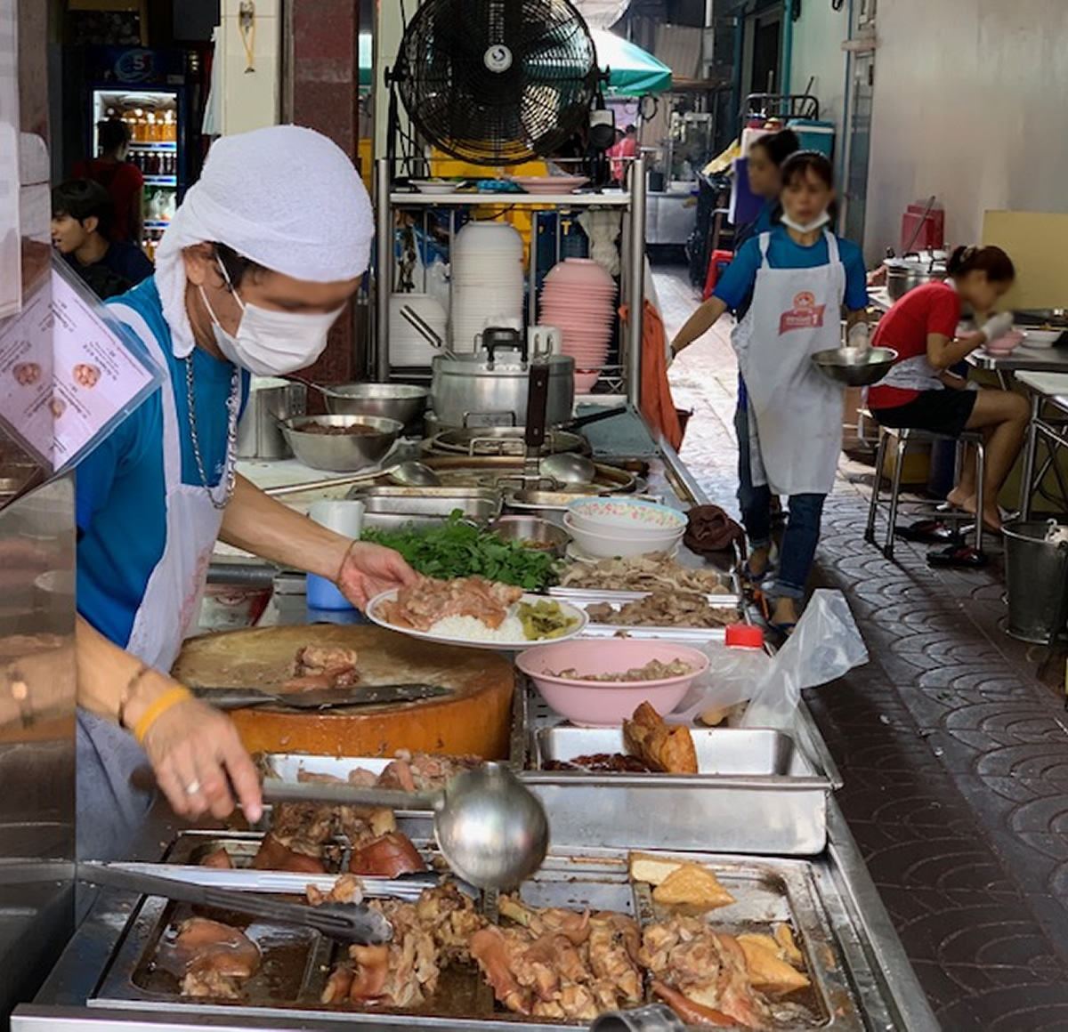 すんごい混んでたから、便乗して並んでみた。クワイジャップというワンタンの皮を丸めた様な麺にホルモンスープという酒好きには堪らないメニューが売り。その他に叉焼餡かけ丼(カーオムーデーン)なんてのもお薦め。一口目は胡椒効き過ぎって位舌をピリリとさせるけど、慣れてくると止まらない…好吃ですね。クワイジャップの写真がボケている…必死に食べ過ぎて、写真撮るの忘れちゃったから。だから隣の人のを盗み撮りしてみました。
