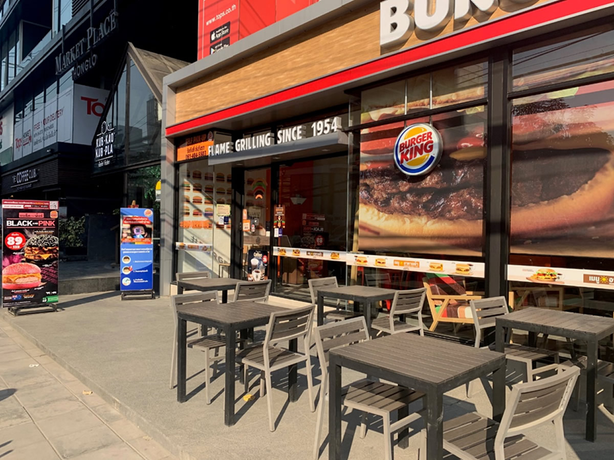 「お昼何食べようかなぁ」なんて街ブラしていると、バーガーキングの強烈な看板が目に留まる。「BLACK and PINK」…話題のガールズグループとのコラボ商品!?いや、関係なさそうである。通常1つ139バーツのところが89バーツと割引している様で、早速買ってみた。