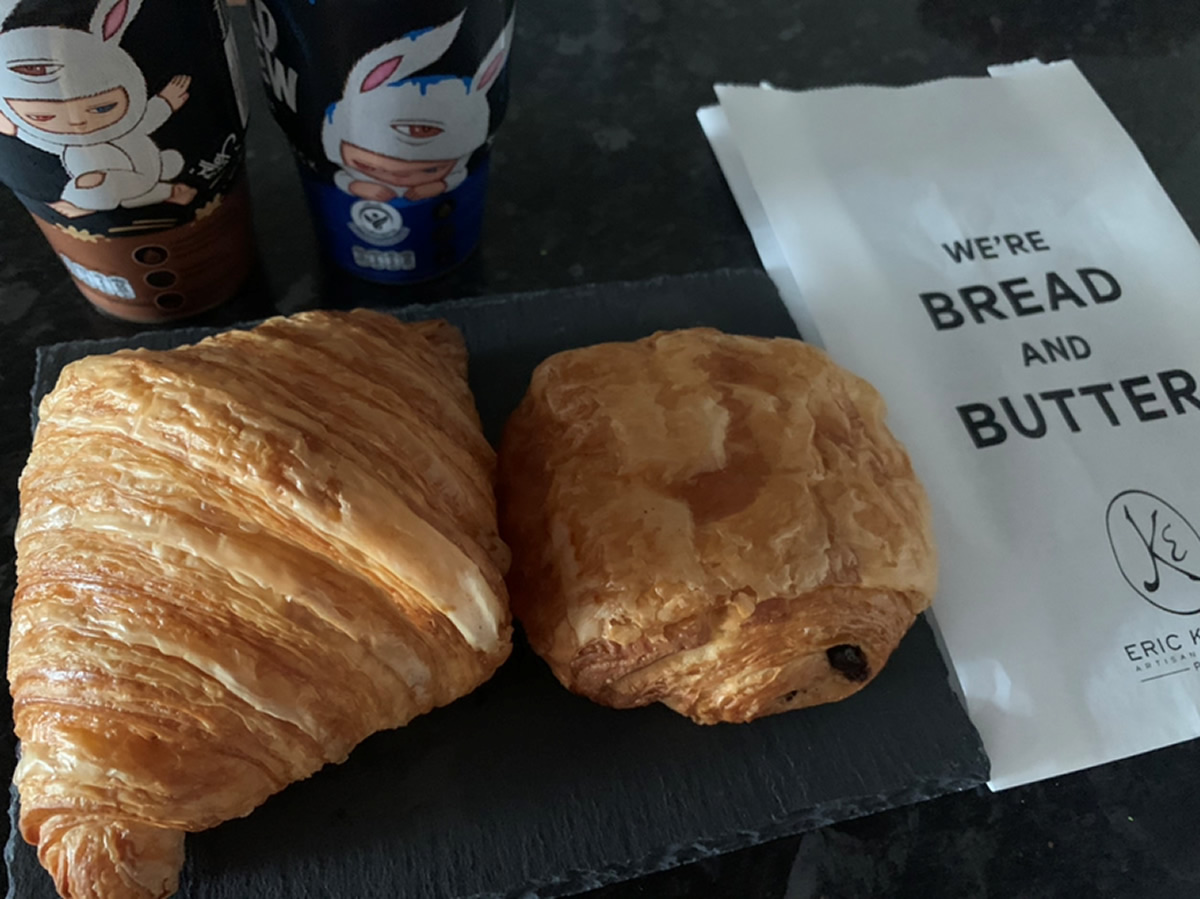 クロワッサンはナイフとフォークでいただく時代なんですねぇ。店ロゴもそうなんだけど、お店に入るとドアノブ(というのかな!?)がクロワッサンの形、クロワッサンラブ度の高さが伺える。Grabなどのデリバリーでも対応している様で、お客さんの列以上に待たされる印象。運良く2階席が空いていたので、早速…あれ、エリックカイザーの方が好きかも。部類としてはサクフワ系なのかな。