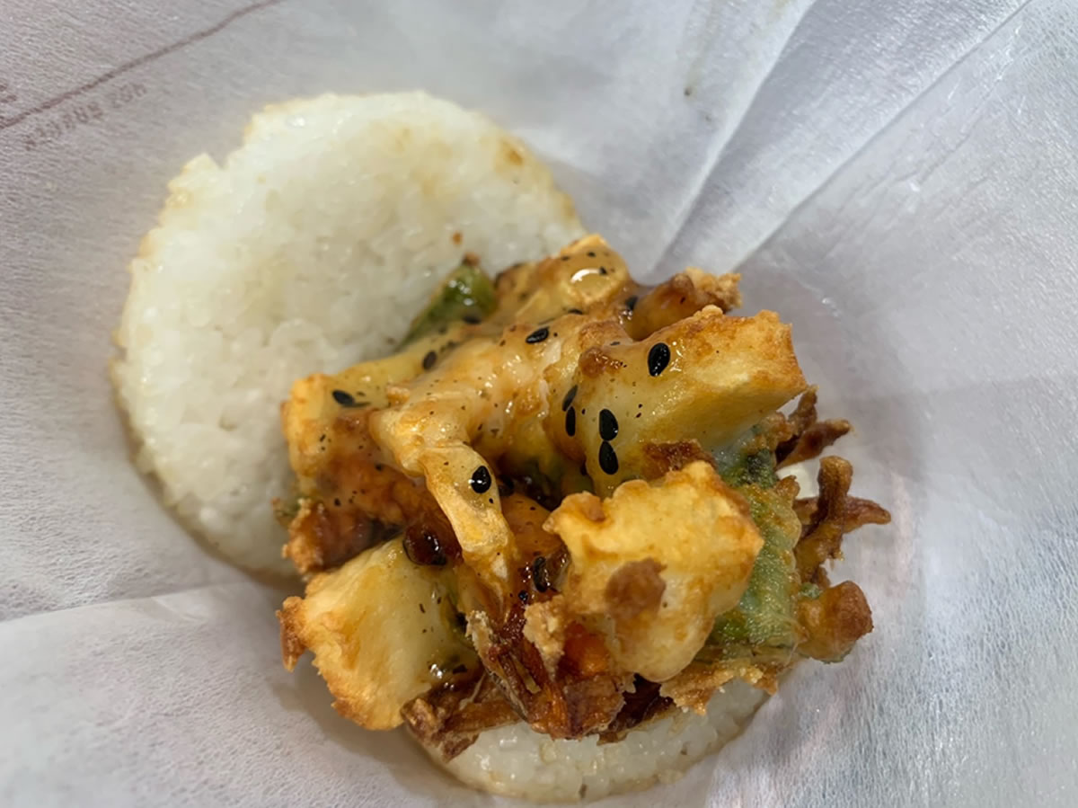 こちらは変化球のライスバーガー。シーフードゴロゴロのかき揚げにマヨベースソース、ハワイの海鮮ライスボウル的な味わい。良い意味で裏切られた感じで美味しかったです。