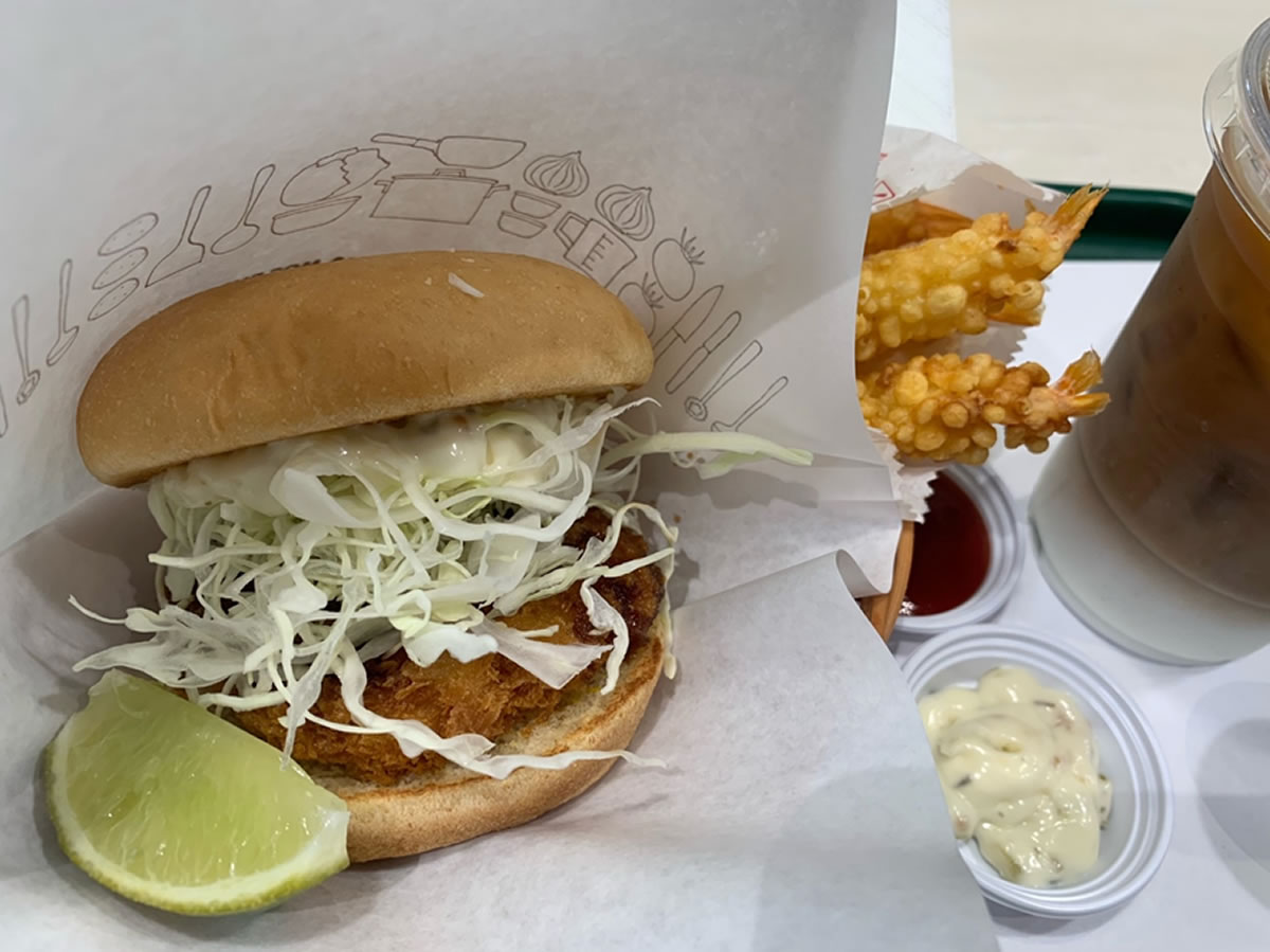 タイで人気のたこ焼きよりインスパイアを受けて作られたというこちらの「タコカツバーガー」が特にタイ人の間で大人気なのだそう。タコのコリコリ食感が良かったですね。