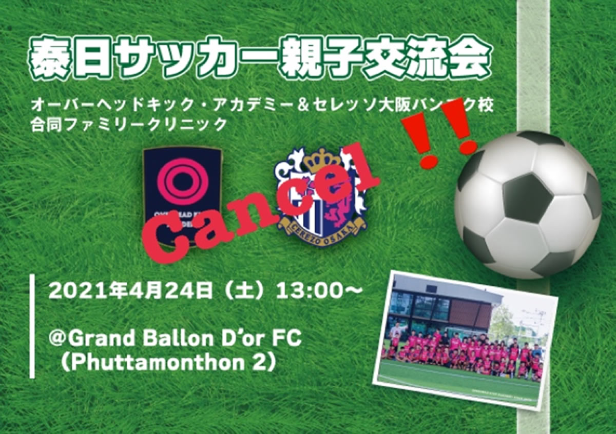 ソンクラン休み前より日本人居住区であるトンローエリアでのクラスター発生のニュースなどが有り、先月から延期していた「泰日サッカー親子交流会」を再度6月以降に延期せざるを得なくなってしまった。