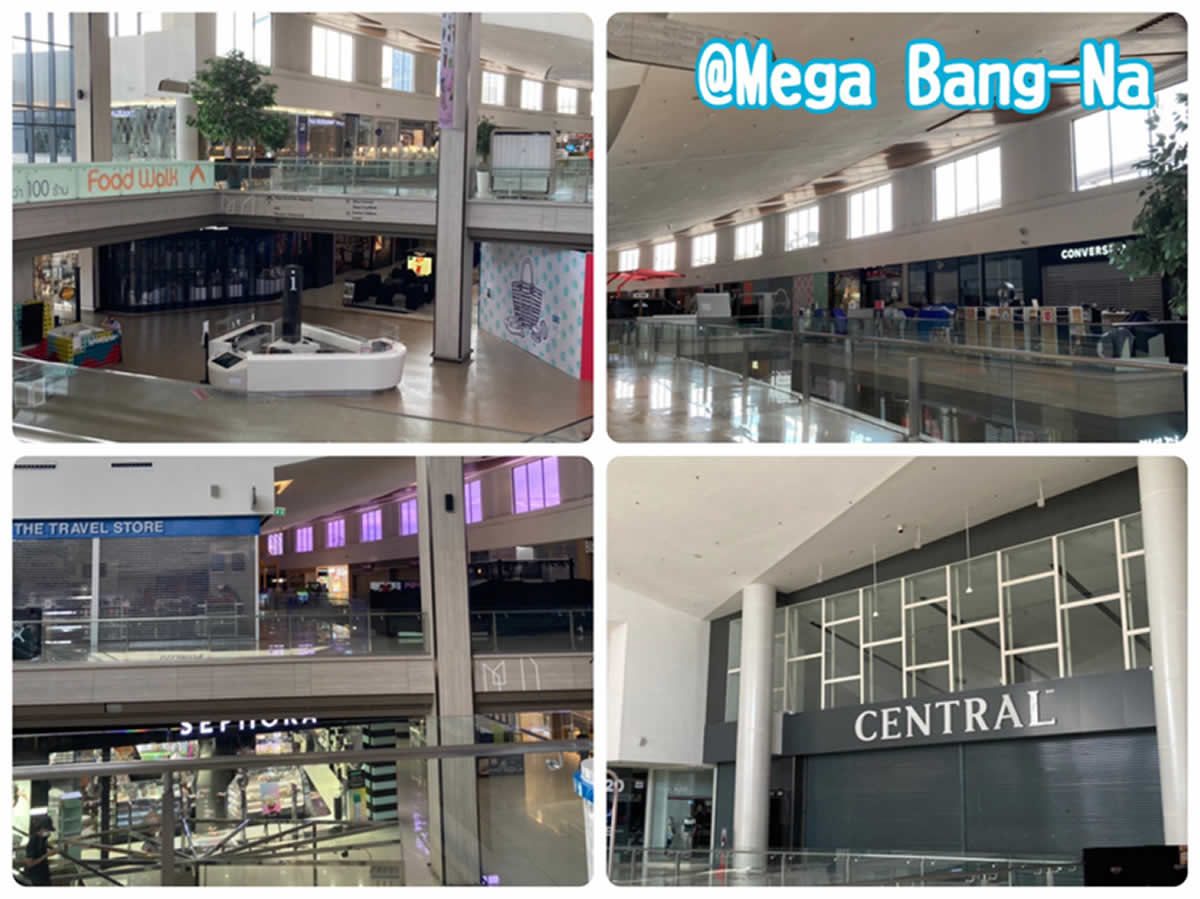 21時以降夜間外出禁止に伴い、商業施設などの営業時間も20時まで。街の様子が一変しました(上の写真は12日のメガバンナ、下の写真は13日のエムクオーティアの様子となります)。