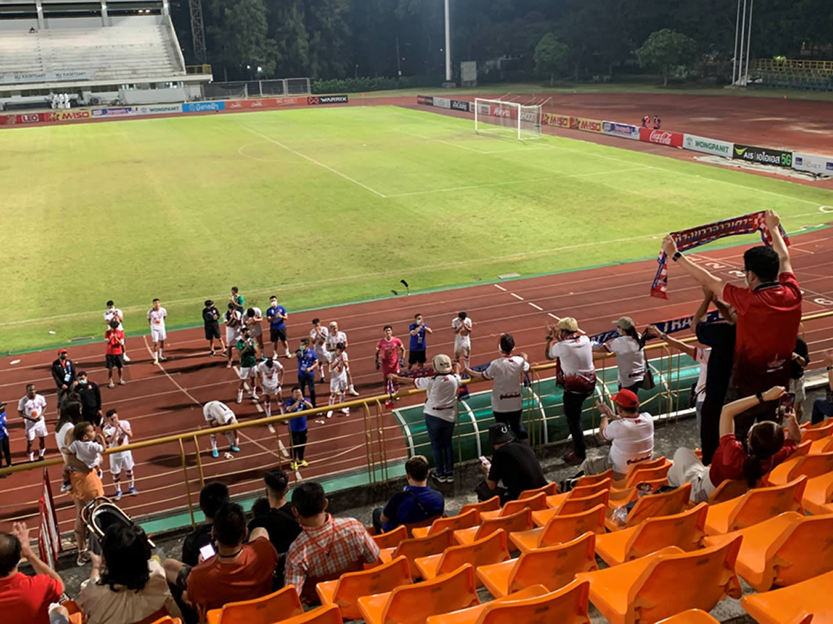 カセサートFCは14位、大学のチームで現在は日本人が所属していなそう…正直にいうと全く情報が無いなか観戦に訪れた。日本人選手が出場していない試合、しかし前々節でリーグ初黒星ながら首位をひた走るトラートFCの戦いを見ておきたかった。