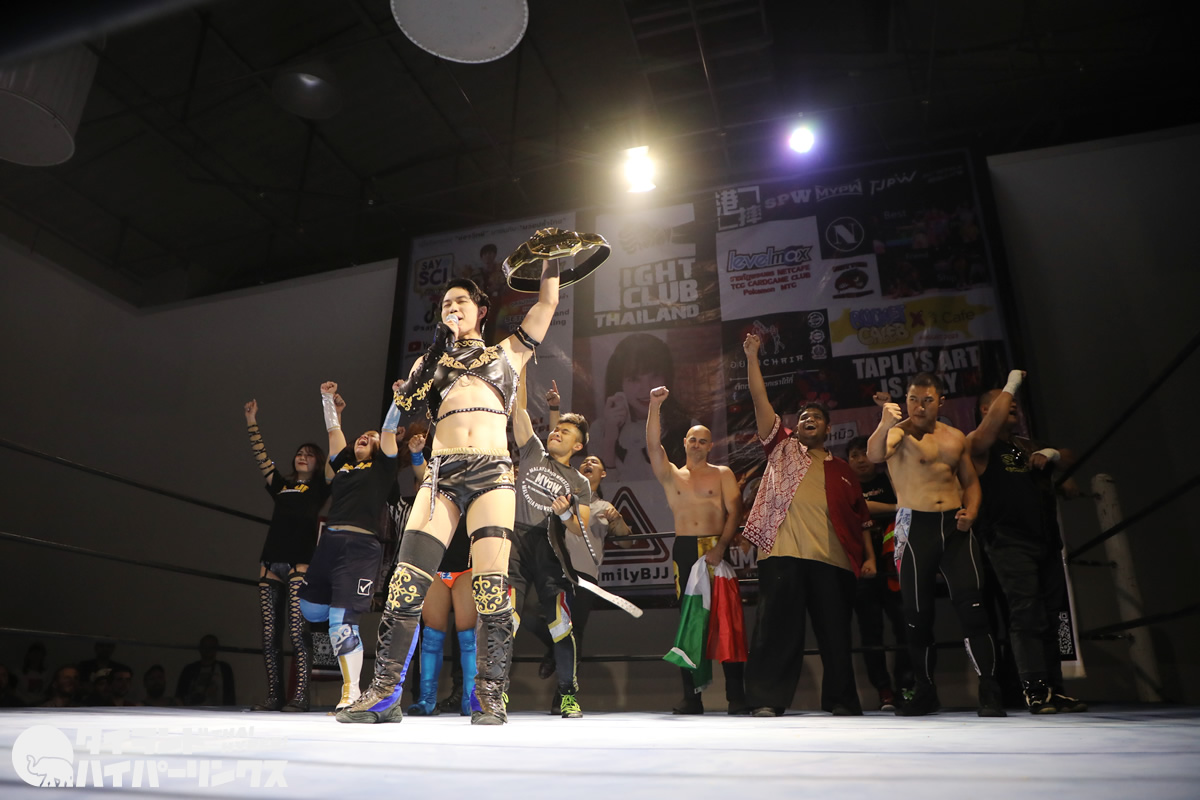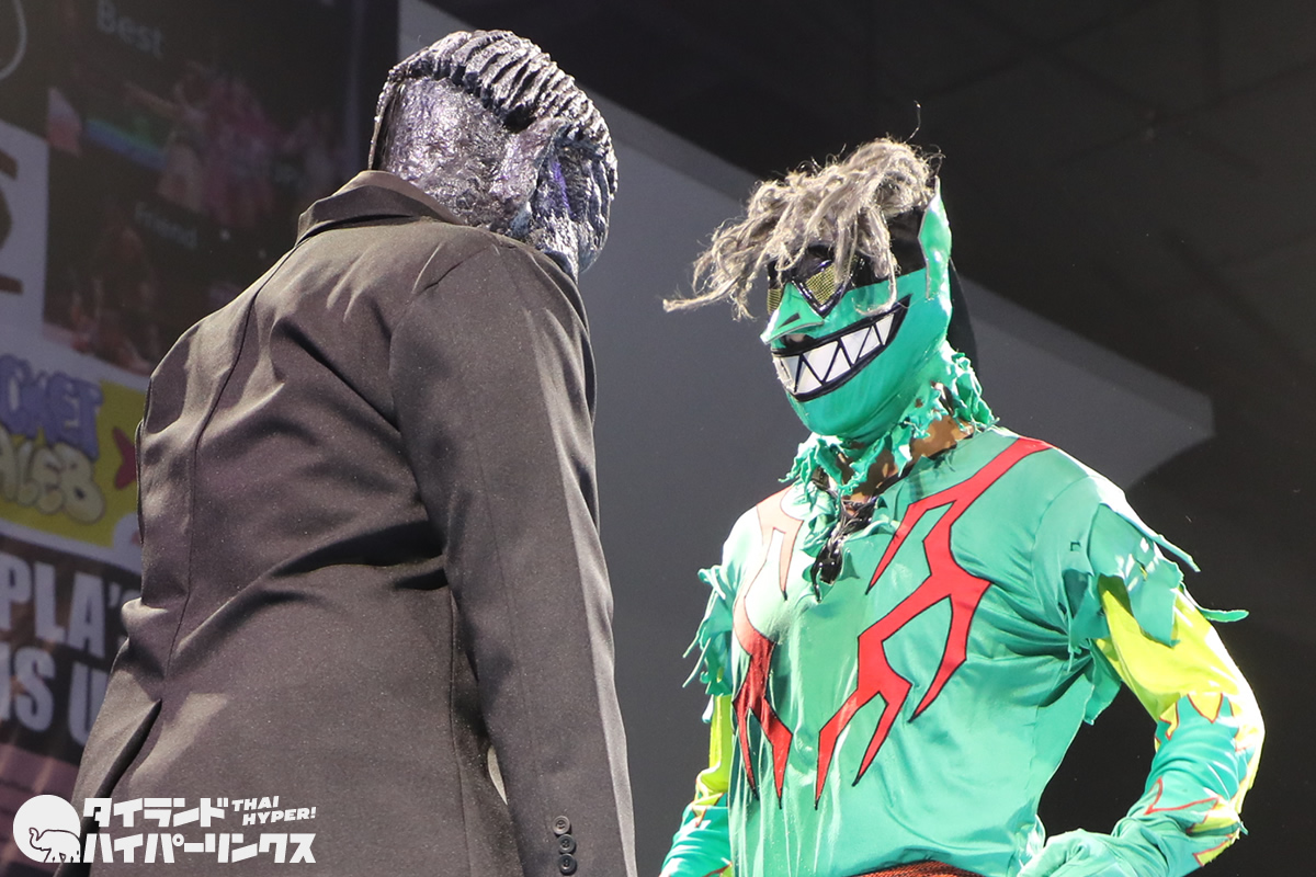 「タイで一番かわいいレスラー」MONOMOTH、何度でも立ち上がる姿に熱さを感じて良い選手だなと感じていたが、今や団体のエースに成長。王子(お姉)キャラのエースはタイっぽくて良いかも。彼がTERRY DIESEL (元IKE-BAKI)の挑戦を退けた世代交代を象徴する試合が、2試合目に組まれてしまったのが、少し残念ではあった。