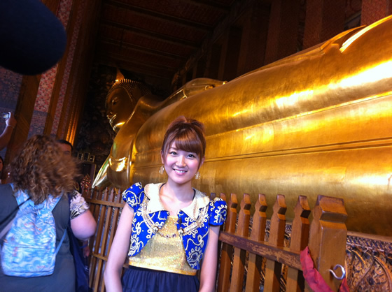 徳永千奈美さん 以前、タイにも『cha cha SING』のプロモーションで一人で来させていただいた時も、ワットポーに行って宣伝とかをしたんですけど。漠然とした考えですけどその時みたいに世界レポートをしてみたいなって思います!