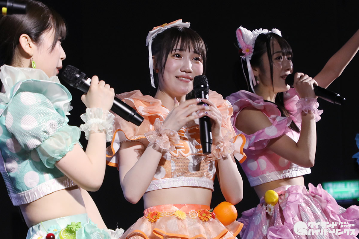 青葉ひなり:今回、初めてタイに来るという日本の方もいたんですけど「日本で見てる時とタイで見てる時の空気感が違うね」って言われて、私達は結構タイに慣れてきちゃったんですけど、初めての人からすると雰囲気が違うんだなって。今回もすごく熱量を感じるライブで、こっちのテンションも上がって、すごく楽しいライブでした。