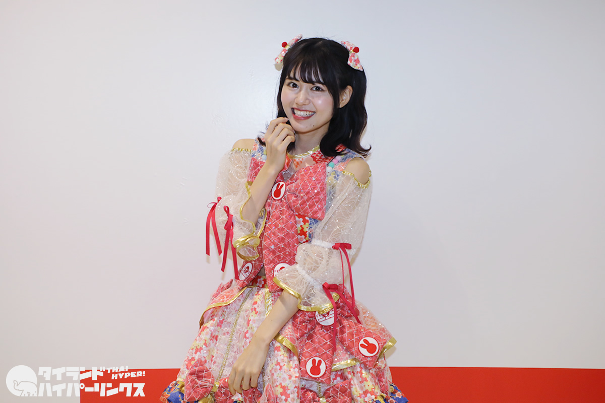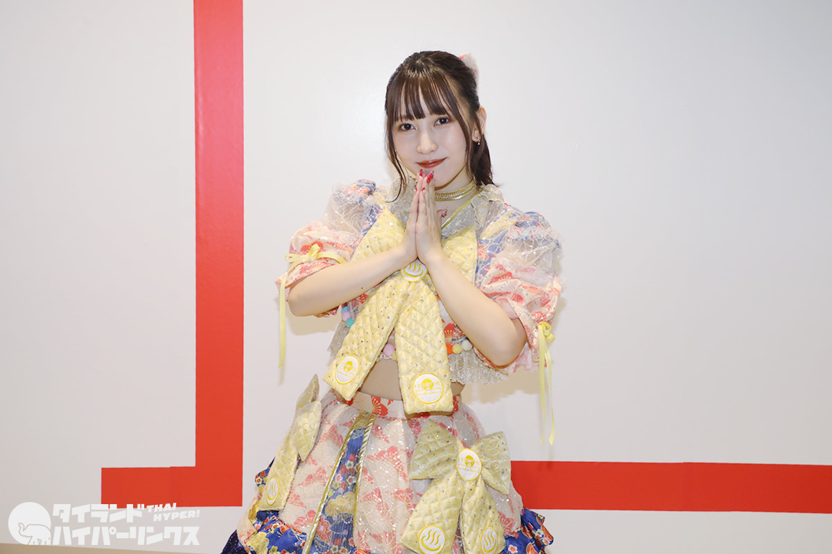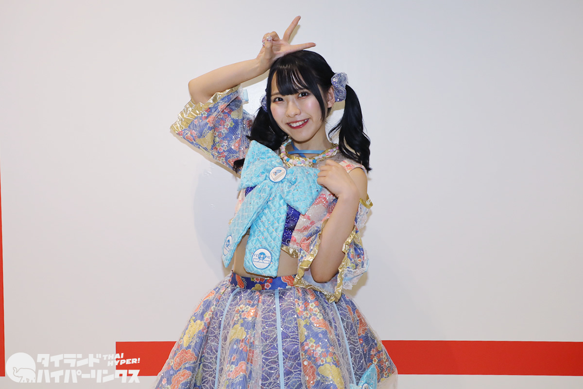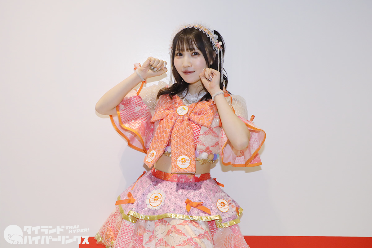 「コロナ禍はタイに来ることが出来なくて、久しぶりにまたジャパンエキスポタイランドに出させていただいたんですけど、『あ~、こんな感じだったなぁ!』って懐かしい気持ちになりました。グループが変わっていくアイドル界で、FES☆TIVEはすごく長くジャパンエキスポに出させていただいているんです。お客さんの雰囲気とかも知り尽くしているので、私たちFES☆TIVEが引っ張っていきたいなって気持ちもあるし、ジャパンエキスポの長老みたいな感じでもあるので、私たちが良いライブをしてジャパンエキスポを締めくくりたいなって思います。」