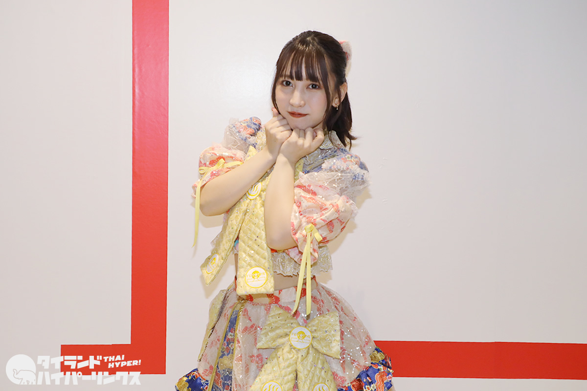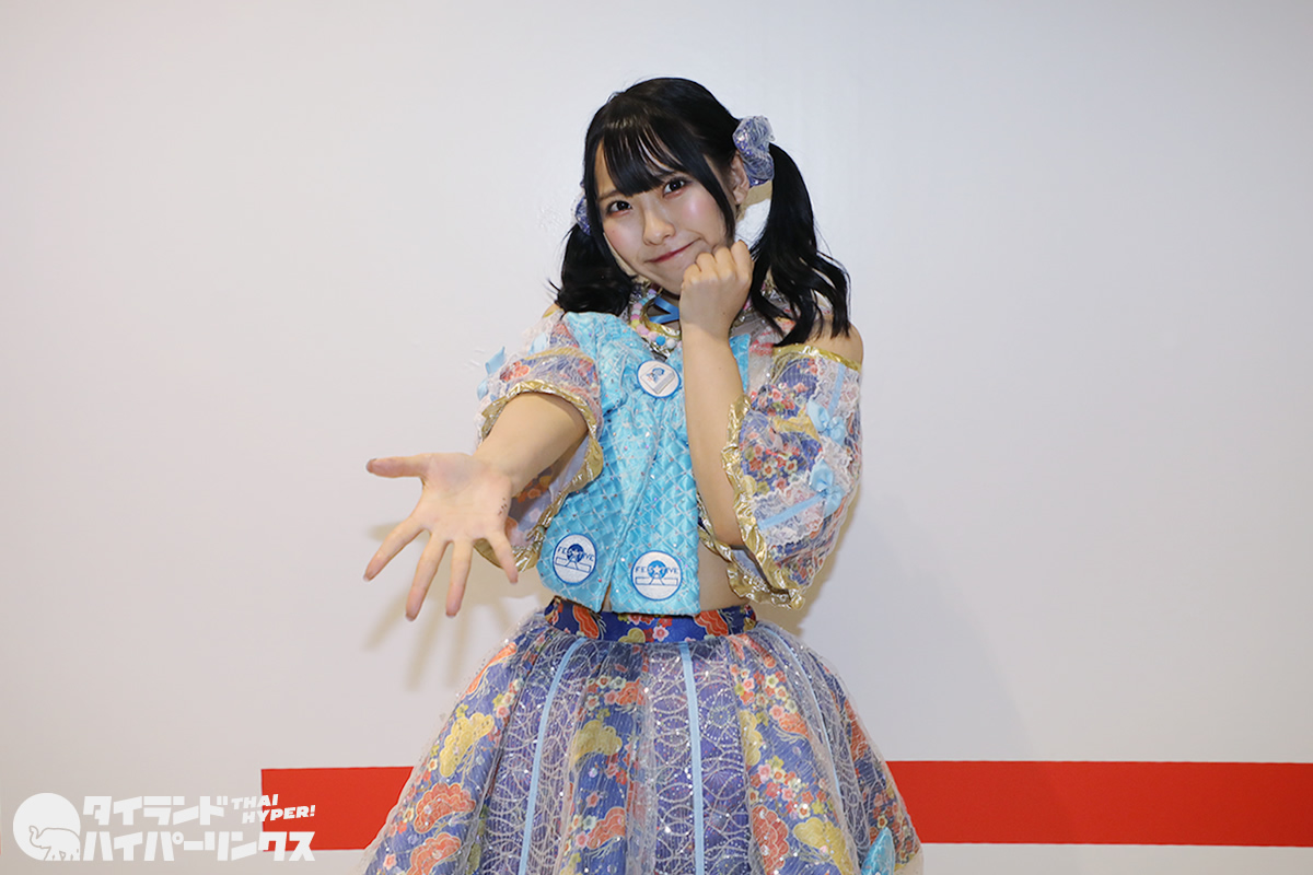 「タイは勿論海外に行かせていただくことが多いんですけど、まだヨーロッパの方とかは行ったことがないので行ってみたいですね。日本のアイドル文化をどんどん広げていけたら良いなって思います。世界で好きになってもらえるアイドルになりたいですし、”お祭り系アイドル”として世界を盛り上げていきたいです。あと私はステージを楽しんでいるときの笑顔が素敵だと言ってもらうことや、ダンスと表情がマッチしていて良いって言ってもらえることが多いんですよ。こういう表現力って言語が必要ないから、自分の表現を武器に海外でも頑張っていきたいです。」