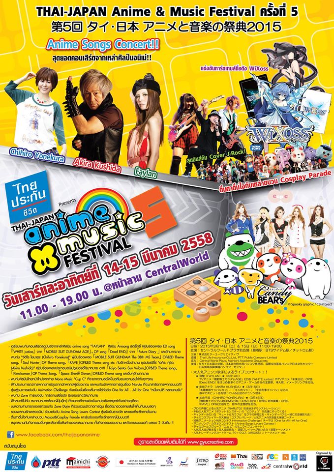 2015年3月14日・15日、アニメオタクのお祭り『第5回 タイ・日本 アニメと音楽の祭典(Thai Japan Anime & Music Festival 5)』がバンコク・セントラルワールド前広場で開催されました。