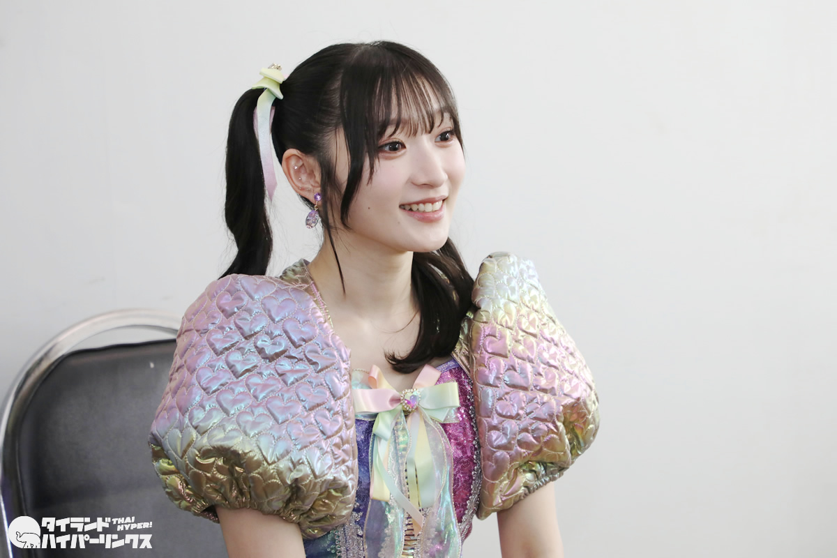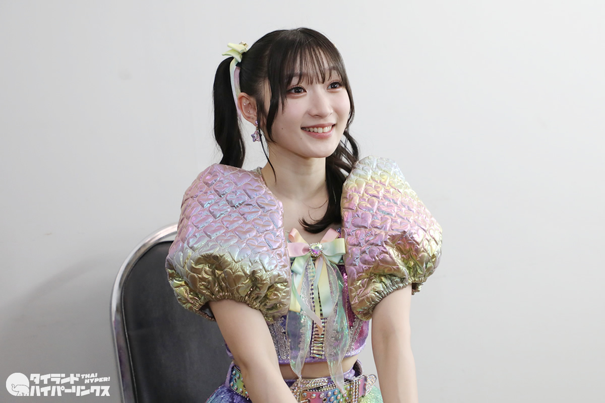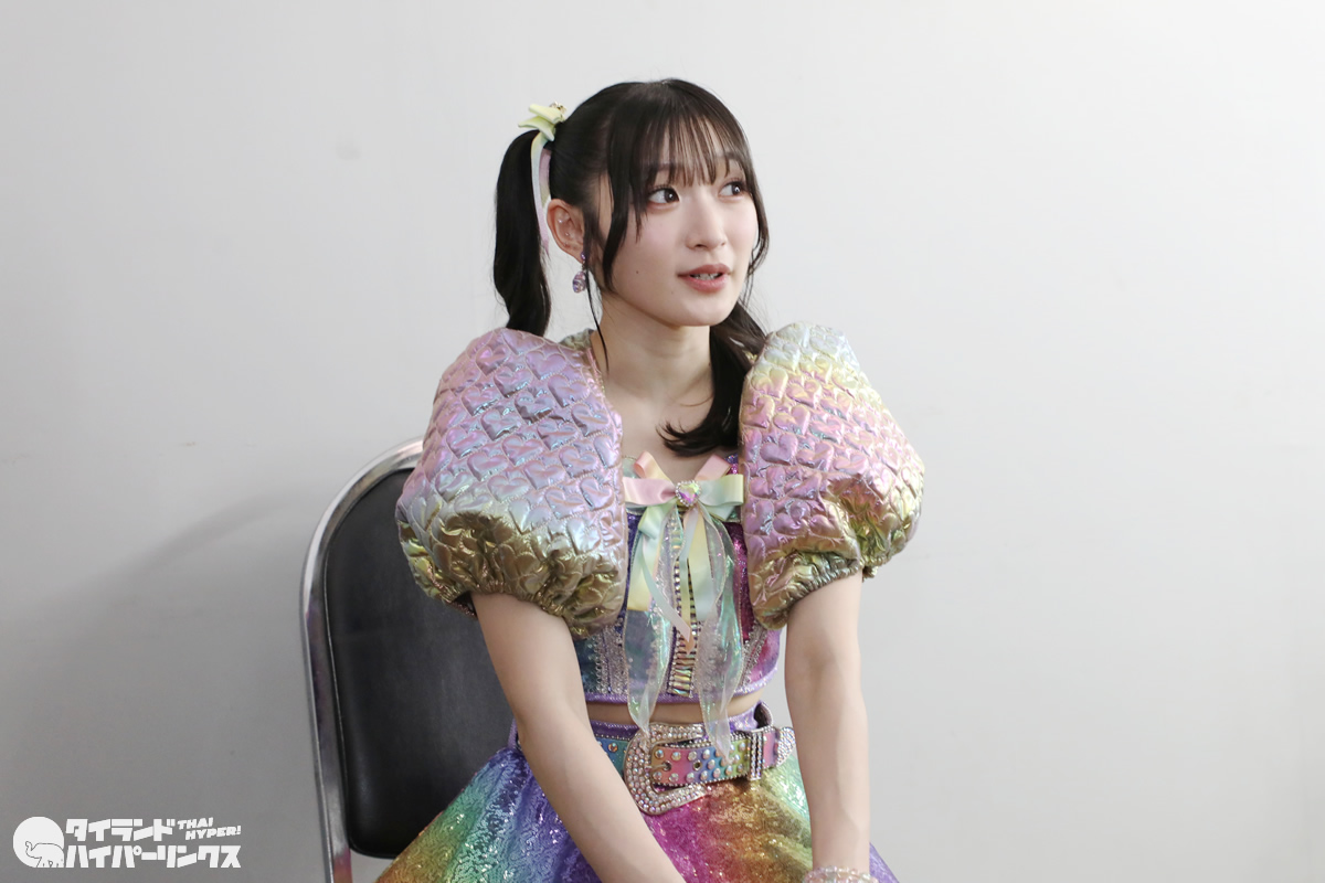 バックダンサーの方たちとBerryz工房さんの「Loving you Too much」をしたんですけど、Berryz工房さんがタイで活躍されていたのを引き継いで来れたっていうのが、すごく嬉しいなって思いました。
