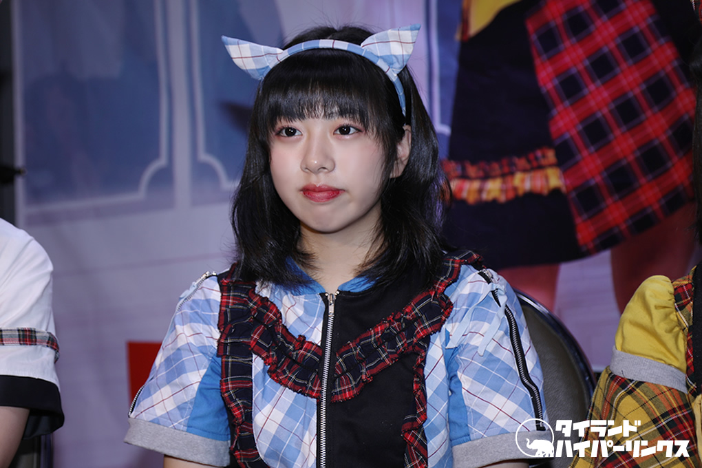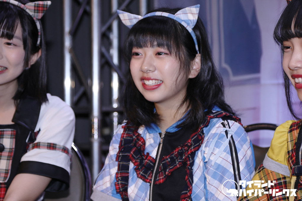 みちか(水色):今回はじめてタイに来て、タイ語も全然わからなくて・・・。MCでメンバーのみんなが話したあとに「カー」みたいな(笑)。