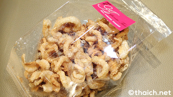 --街のあちこちにお店がありますよ!有名なお店もいくつかあるんで、ぜひ今度行ってみてくださいね。タイの食べ物といえば、今回お土産を持ってきたんです!「ケープムー(แคบหมู)」という名前なんですが、豚の皮をカリカリに揚げたスナックの様なものなんです。