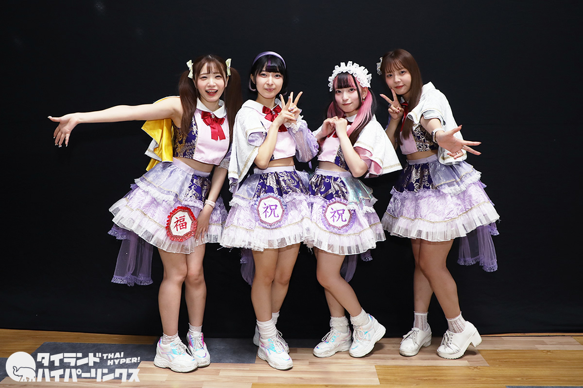 タイランドハイパーリンクスは、タイ遠征最後のライブステージ直前の祝福!ちゅあしぃの皆さんにインタビューを行いました。タイ観光や2023年の活動について、色々とお話を聞くことが出来ました。