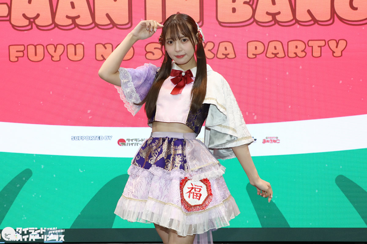 月守ゆら:これは昨年の生誕衣装だったんですけど、タイのみんなは見てないなと思って、せっかくなので選びました。デザインは全部自分でやって・・・。