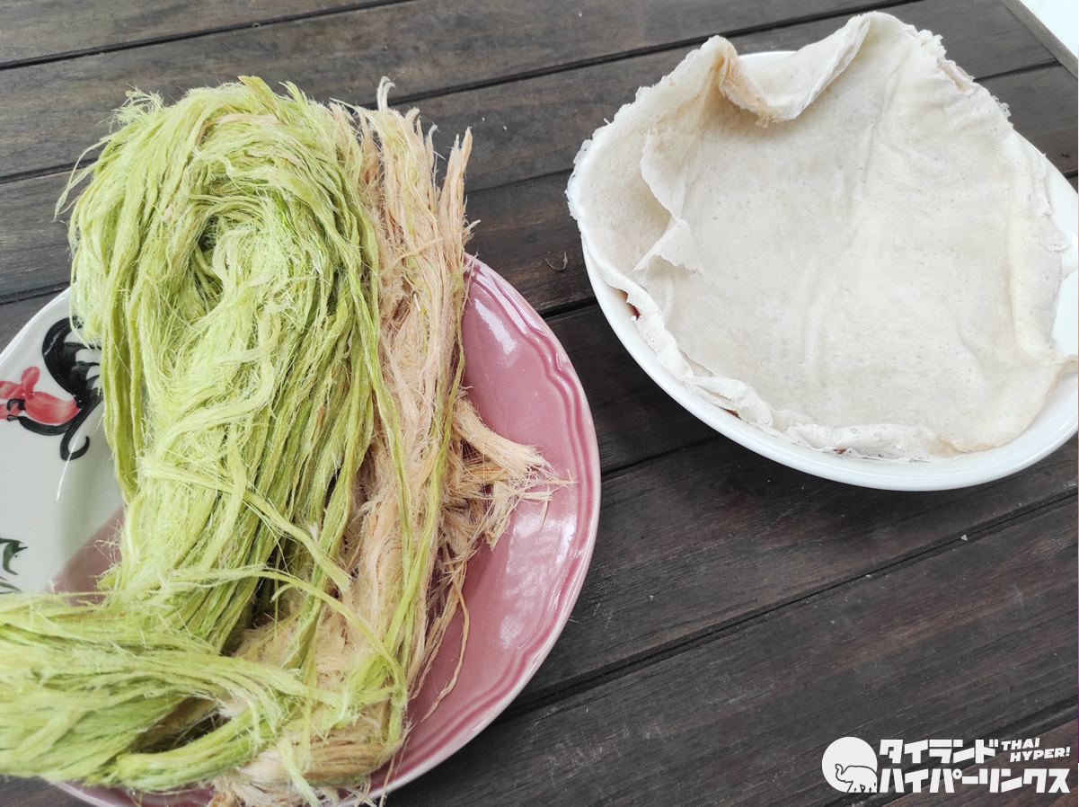 「ロティサイマイ」小麦粉で出来た薄いクレープのような生地に、糸状の綿あめを包んで食べるタイのお菓子