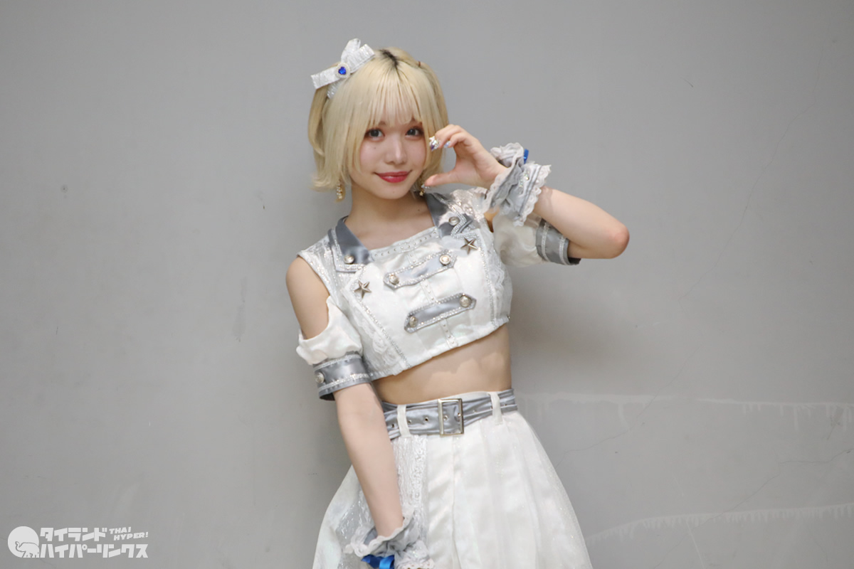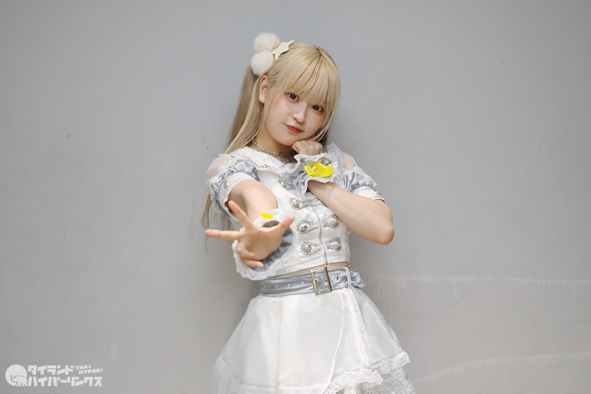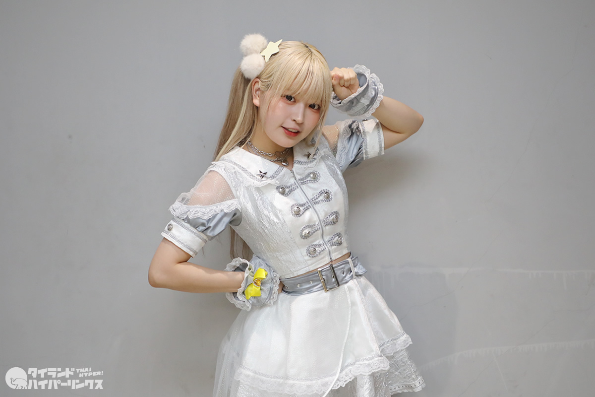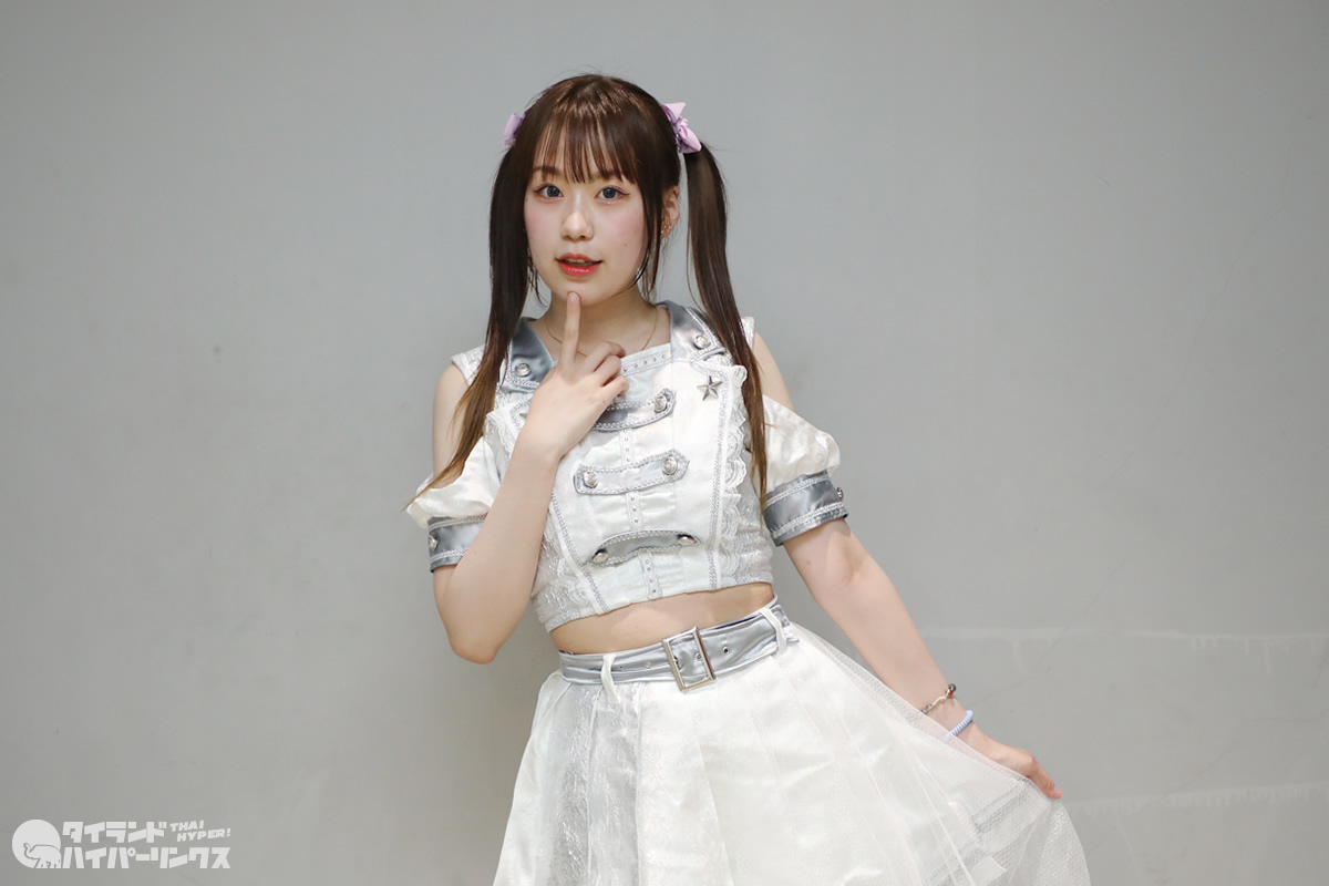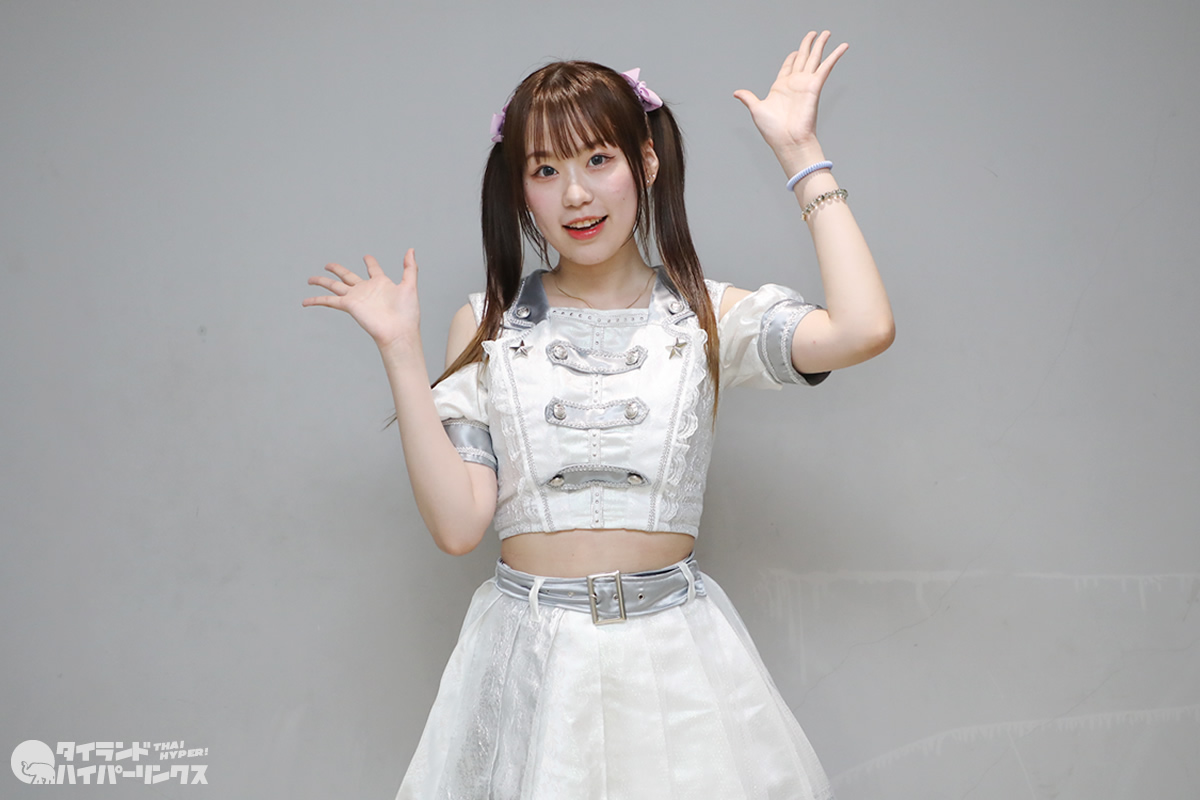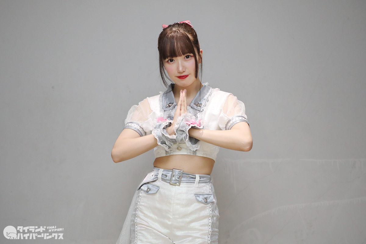 長田美成:タイは私たちがプレデビューした思い出の場所でもあるので、こうやってまた来ることが出来て本当に幸せですね。それにタイのファンの方って盛り上げ方がすごいですよね。日本もすごいんですけど、タイはコールとかリフトとか。
