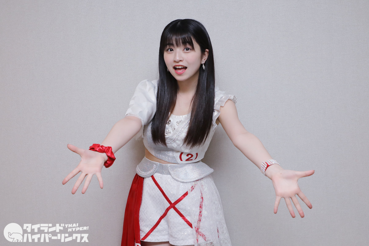 新倉愛海:最初にタイ文字を見たときは本当に暗号のように見えていたんですけど、タイに来て色々見ていると慣れましたし、少しずつでも自分の言葉でファンの方と触れ合えている気がしました。今回の機会を通してまた更に勉強出来たらなって思います。