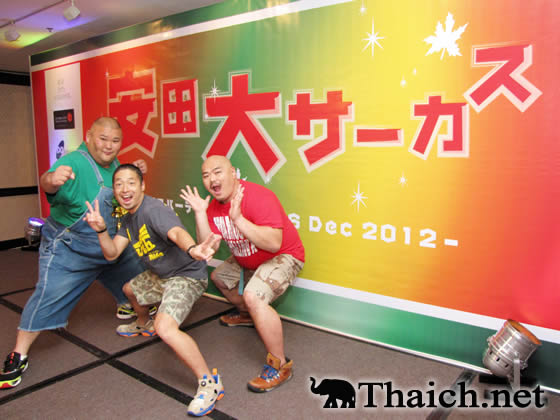 2012年12月16日、タイ・バンコク市内のレンブラントホテルで松竹芸能所属の人気お笑いトリオ・安田大サーカス(団長安田、HIRO、クロちゃん)によるクリスマスパーティのイベントが行われました。