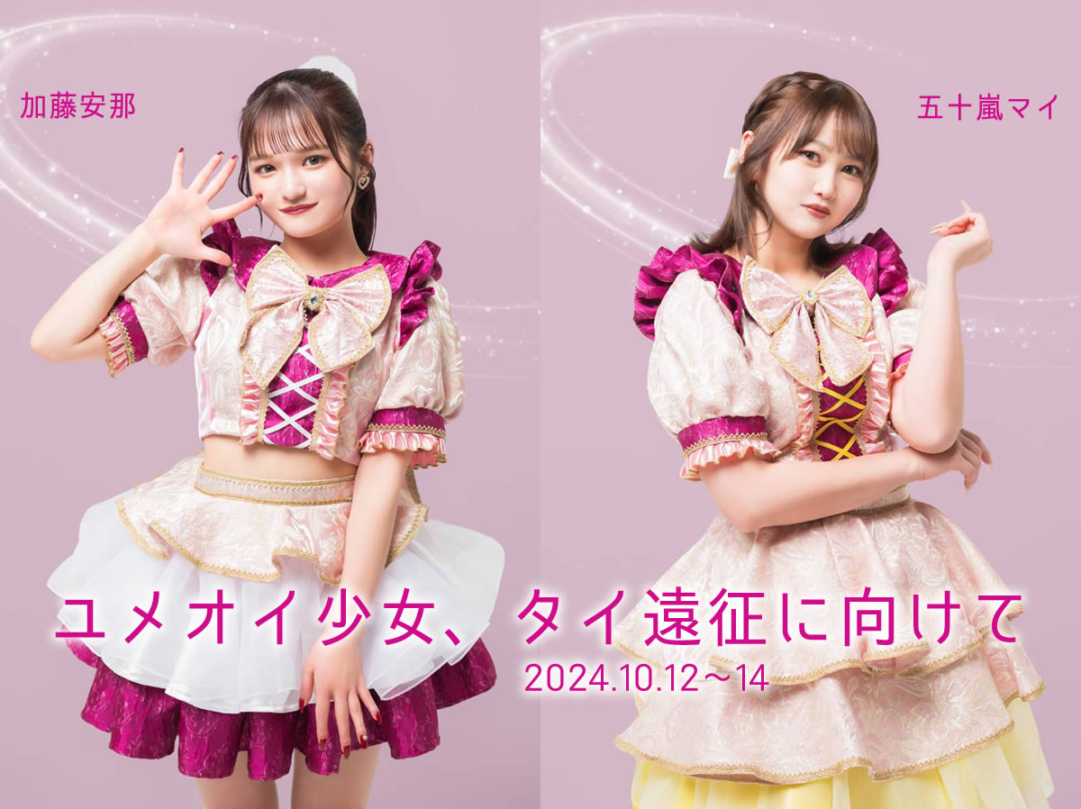 アイドルグループ ユメオイ少女の2024年3度目のタイ遠征が決定。2024年10月12日(土)~14日(月)までバンコクを訪れ、ライブ出演などを行います。なお、今回は新メンバーの渡辺陽葵さんは参加せず、加藤安那さんと五十嵐マイさんのみがタイへ。お二人は10月が誕生日なので、この二人でのタイ遠征が決定したのだとか。