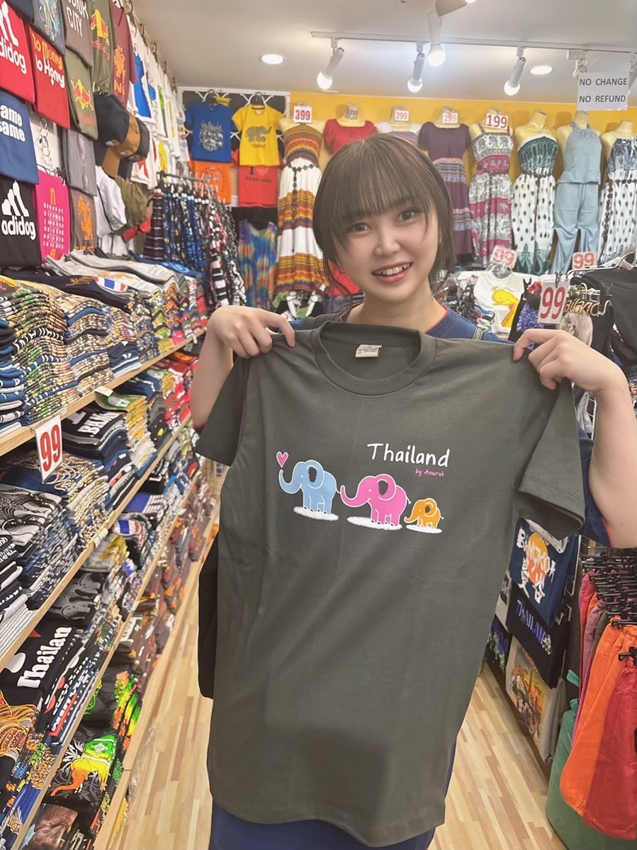 マイ:今回の遠征ではタイっぽいTシャツを買いたいです! ゾウの絵とか、I♡THAILANDとかのTシャツでもいいですし! タイパンと合わせてタイコーデでお出かけしてたくさん写真を撮りたいです!