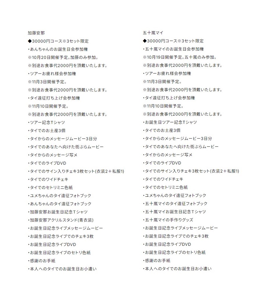 ※ユメオイ少女の応援セットを一部抜粋。こちらは3万円の応援セットの内容。1万円や、5千円の応援セットも。