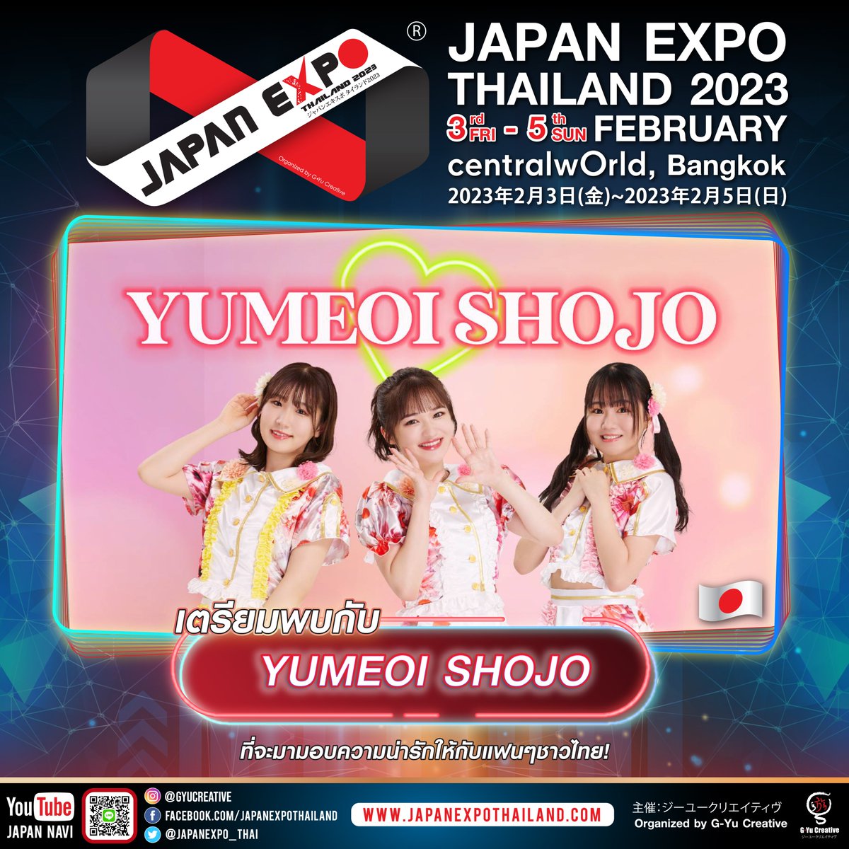 多くの日本人アーティスト・アイドルらが招聘される日タイ友好のビッグイベント 「ジャパンエキスポタイランド2023」に、アイドルグループ ユメオイ少女の出演が決定。2020年以来3回目となる今回のタイ遠征は、新体制でのパフォーマンスになります。