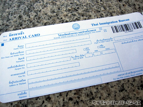 タイ出入国用紙に英語でしっかり記入しパスポートと共に窓口へ。