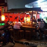 ウドンタニで人気のラーメン屋台。醤油ラーメン59バーツ。とんこつラーメン69バーツ。水無料。 タイ国[...]