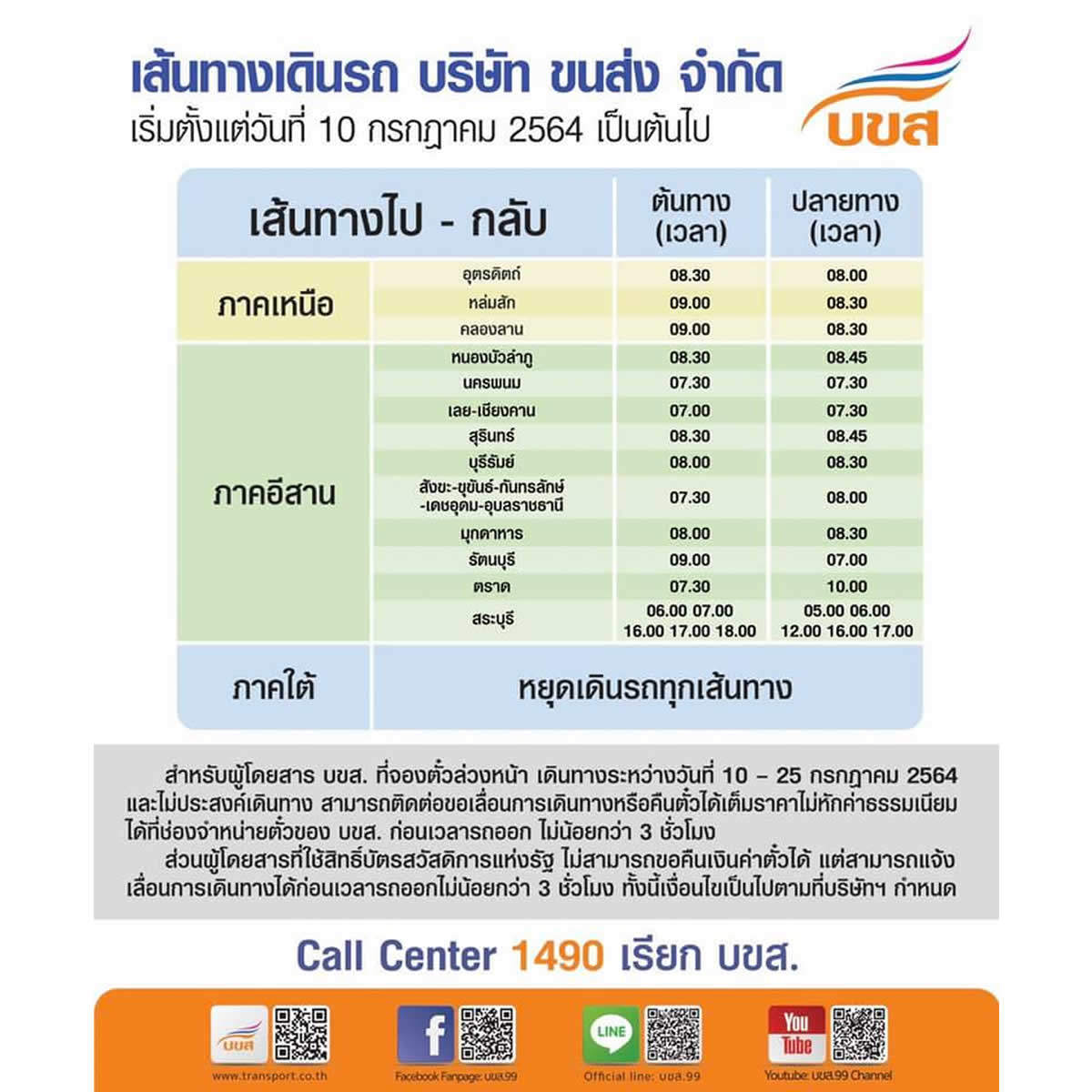 長距離バスターミナル等を運営するThe Transport社(บขส)は、2021年7月10日から全ての南部ルートを運行停止すると発表しました。