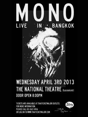 日本のポストロックインストゥルメンタルバンドMONOのタイ・バンコク公演「MONO LIVE IN BANGKOK」が国立劇場で2013年4月3日に開催されます。