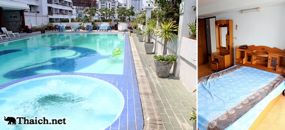 スタッフの人にアパートを案内して貰いました。箪笥やベッドなどの家具が付いていて、家賃は部屋によって4千900~1万5千バーツ(3か月以上)。冷蔵庫やTVや冷蔵庫もレンタル出来て、NHKの海外放送も観れるそうです。